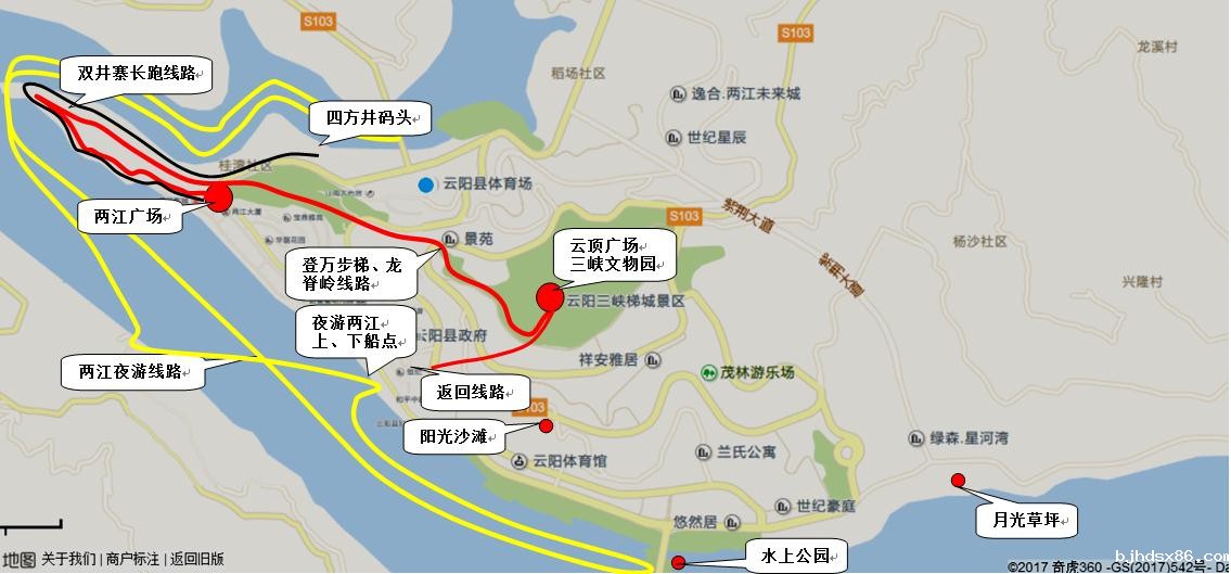 3.线路:从云阳两江广场出发,环双井寨步道至四方井码头,全长约4公里;