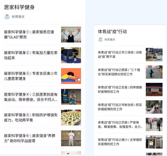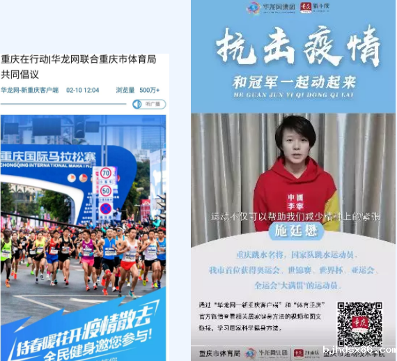 华体汇app官方网站坚决贯彻习近平总书记关于疫情防控的重要讲话精神,坚决落实市委、市政府关于疫情防控的决策部署,把人民群众生命安全和身体健康放在第一位,联合各区县体育部门共同开展倡议“待春暖花开疫情散去,全民健身邀您参与”抗击疫情主题宣传活动,并与北京体育大学共同制作的居家科学健身教学视频,自1月31日起,开设“居家科学健身”专栏,邀请李雪芮、施廷懋等体育健儿、健身专家、健身达人倡导和示范居家科学健身方法,通过《今日重庆》、华龙网APP客户端、红锦网、体育重庆微信公众号等新媒体市级各类媒体,每天推送2条以上简便易行、科学有效的居家健身方法,大力推广普及居家科学健身知识,倡导疫情防控时期的健康生活方式,受到广大市民欢迎和好评。截止2月14日,专栏已推送“居家科学健身”知识30条,浏览量达938万次。同时,该局开设“体育战‘疫’行动”专栏,及时宣传各区县体育部门、各直属单位积极行动,采取切实有效措施防控疫情的好经验、好做法和感人事迹,截止2月14日,专栏已推送23条信息,为抗击疫情,打赢疫情防控阻击战凝聚传播正能量。