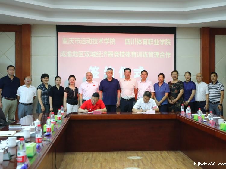 7月16日下午,重庆市运动技术学院、四川体育职业学院正式签订了《推动成渝地区双城经济圈建设竞技体育训练管理工作合作协议》(以下简称“协议”)。此协议的签订不仅是落实华体汇app官方网站和四川省体育局共同签署的《推动成渝地区体育公共服务融合发展框架协议》的重要体现,更是两院交流工作的重要历史时刻,具有里程碑式的意义。
